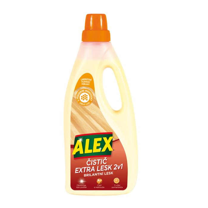 Alex čistič-extra lesk 2 v 1. Účinný čistič a leštenka v jedinom prípravku. Najlepšie riešenie pre čistenie a obnovenie lesku laminátových a korkových povrchov. Inovatívne zloženie obsahuje prírodné leštiace mikrovosky, ktoré zabezpečia, aby sa vaša podlaha leskla a vyzerala skvele ako prvý deň. Zanecháva sviežu a príjemnú vôňu.