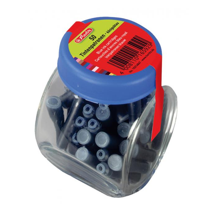 Náhradné atramentové bombičky 50 ks v sklenenej dóze. Farba modrá.