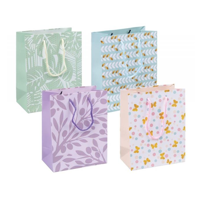 Darčeková taška DONAU HOME: - ideálna na darčekové balenie - rôzne dizajny vám umožňujú zladiť ju s každou príležitosťou - od narodenín až po sviatky a výročia - vďaka laminovanému, matnému povrchu sa vyznačuje väčšou odolnosťou voči poškodeniu a dlhodobo si zachováva elegantný vzhľad - vyrobená z papiera s gramážou 210 g/m² - pevná šnúrková rukoväť z polypropylénu zaisťuje pohodlné nosenie - rozmery: 18 x 23 x 10 cm - farba: mix motívov