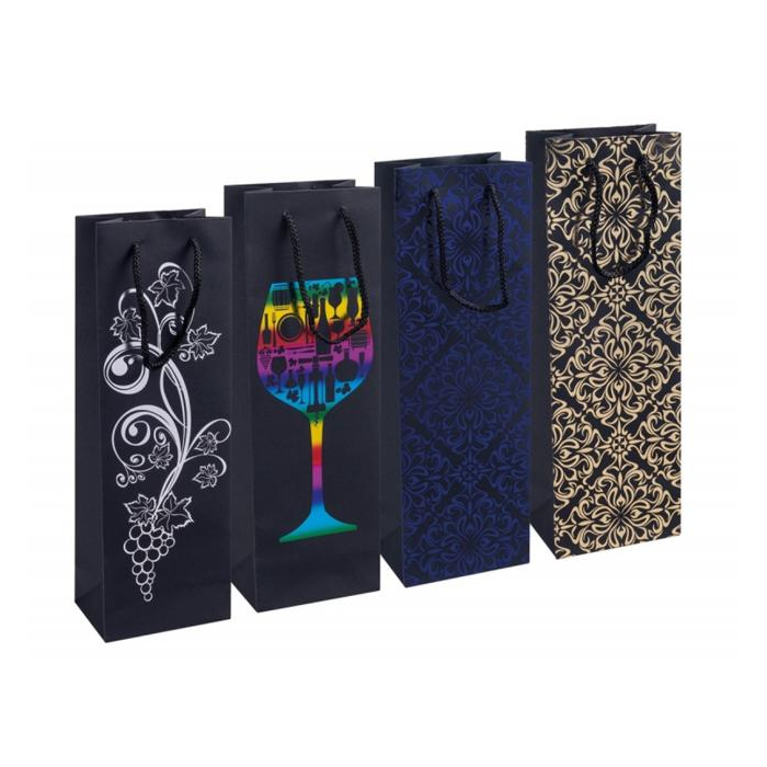Darčeková taška DONAU HOME na fľašu laminovaná, 12x35,5x8cm, celoročná, šnúrka, mix motívov bez možnosti výberu