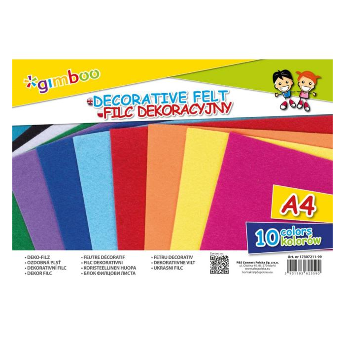 Dekoračná plsť GIMBOO, A4, vo fólii, 160 GSM, mix farieb