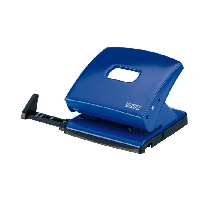 Celokovová kancelárska dierovačka s posuvným pravítkom a plastovým poťahom v dizajne zošívačky Novus C2 a C-STABIL. Rozpätie dier 8 cm. Hmotnosť 350 g. Záruka 10 rokov. Farba: modrá Kapacita dierovania: 25 listov