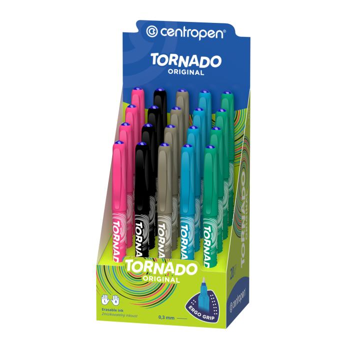 Roller pre školákov s ergonomickým držaním a masážnymi bodmi s modrým zmizíkovateľným atramentom. Pre ľavákov, pravákov i dysgrafikov. Šírka stopy 0,3 mm. Dodávaný v displeji 5 x 4 ks.