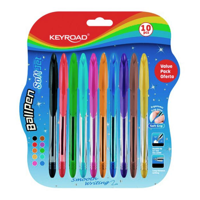 Guľôčkové pero KEYROAD Soft Jet 0,7 mm, blister 10 ks, mix farieb