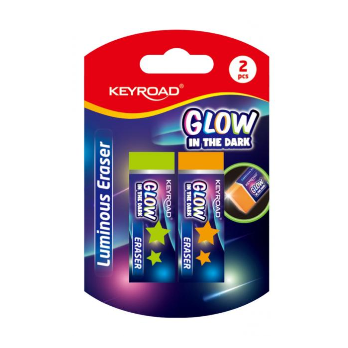 Guma KEYROAD fluorescenčná, svietiaca v tme, mix farieb, blister 2 ks, mix farieb