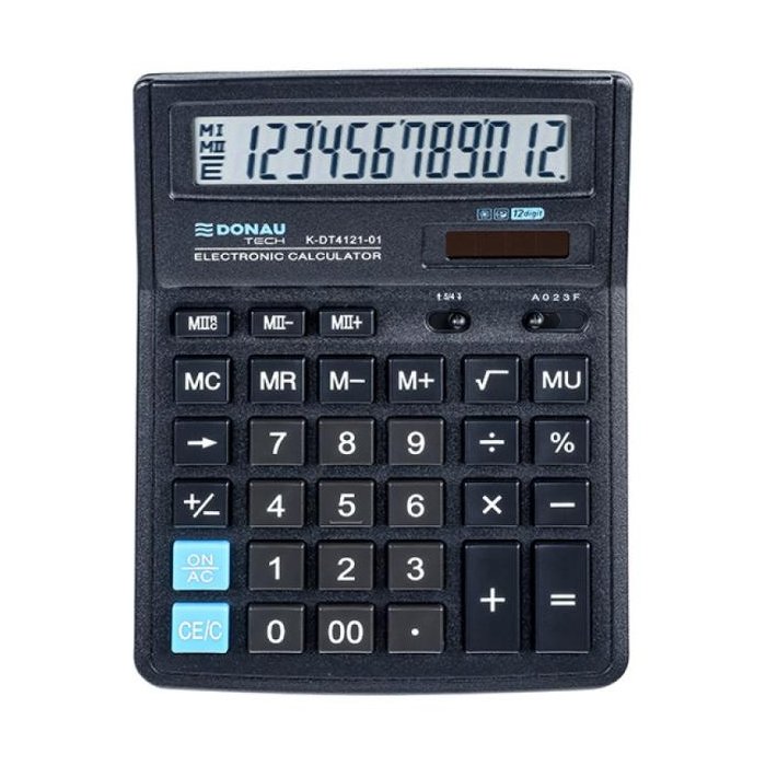 Stolová kalkulačka K-DT4121-01K-DT4121-01 Kalkulačka s 12-miestnym displejom a plastovými tlačidlami. Farba čierna. Záruka 5 rokov.