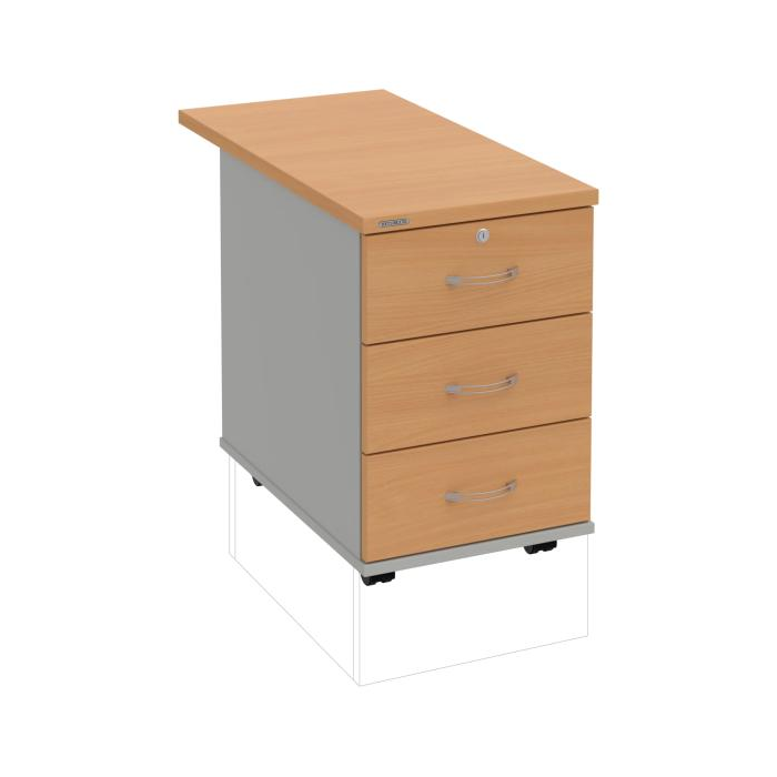 Kontajnery - všetko uložené a vždy poruke. Kontajnery sa väčšinou umiestňujú pod stoly. Mobilné modely sú vybavené kolieskami, je možné ich premiestniť podľa potreby. Základným materiálom korpusov je kvalitná laminovaná drevotriesková doska hrúbky 18 mm. Pre dlhšiu životnosť je na horný diel korpusu použitá doska, ktorej hrúbka je 25 mm. Korpusy a čelá zásuviek sú chránené proti poškodeniu hranou ABS 2 mm. Horná doska ma hĺbku 80. 3-zásuvkový kontajner má uzamykatelnú iba 1 zásuvku. Zásuvky sú z plastu, ktorý je ľahko umývateľný a vhodný pre jednoduchú údržbu. Praktickou súčasťou vrchnej zásuvky je prehľadný organizér a priestorové deliace priečky. Vaše ceruzky, sponky a ďalšie kancelárske potreby budú vždy na poriadku. Organizér a deliace priečky sú súčasťou každého kontajnera. Na kontajnery Hobis sa vzťahuje päťročná záruka.