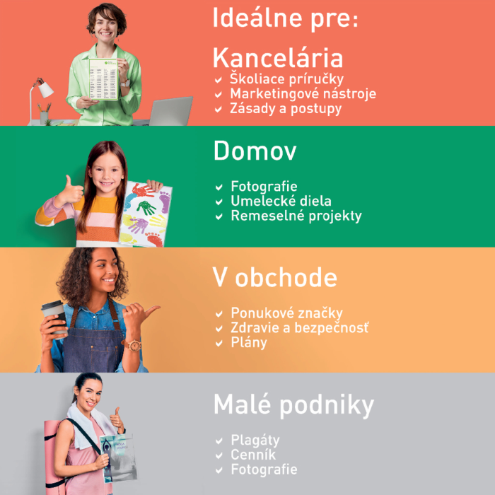 - Dlhodobá ochrana dokumentu pred nečistotou, tekutinou a vlhkosťou. Štandardná tuhosť laminácie.