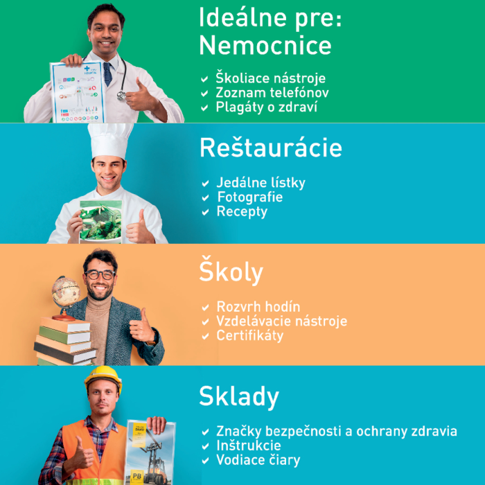 - Lesklý povrch obalov zvýrazňuje farebnosť dokumentu