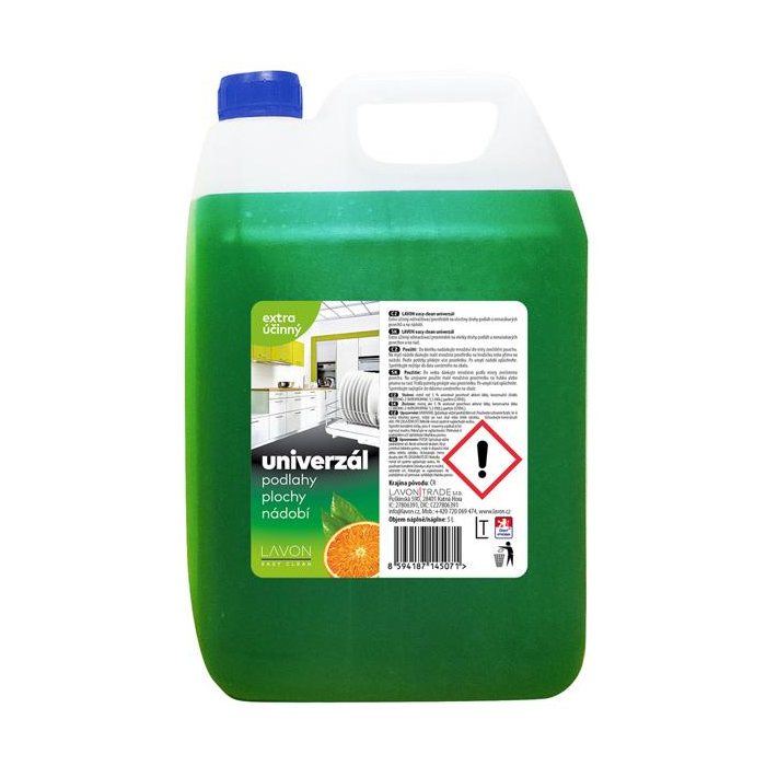 Lavon univerzál je extra účinný odmasťovací prostriedok s vôňou zeleného čaju a pomarančov. Je vhodný na všetky druhy podláh a nenasiakavých povrchov, účinný aj na riad