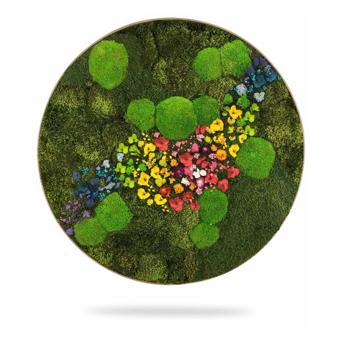 Machový obraz RASTLINY Acebo je tvorený kombináciou machov v zelených odtieňoch s kontrastne farebnými stabilizovanými kvetmi, ktoré vytvárajú energický a veľmi moderný dizajn, ktorý oživí každý interiér.