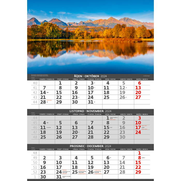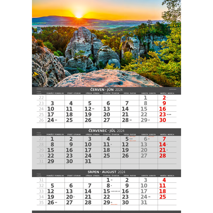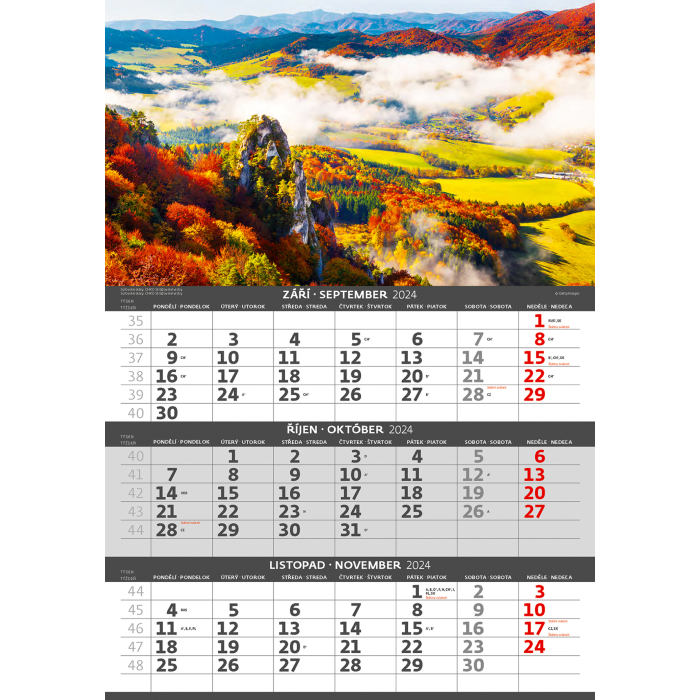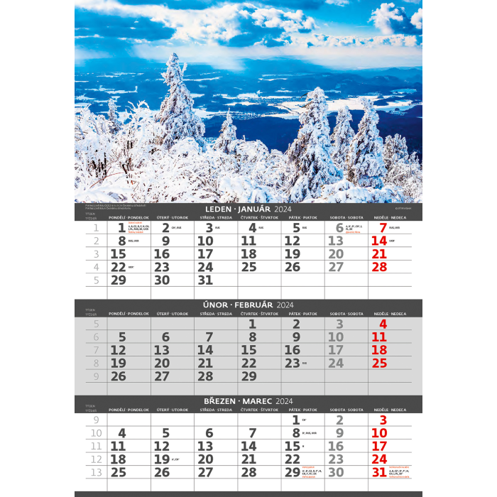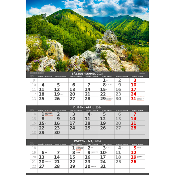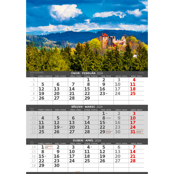 Kalendárium: české/slovenské trojmesačné so sviatkami európskych štátov (CZ / SK / A / B / D / F / H / CH / I / PL / RUS / UKR)