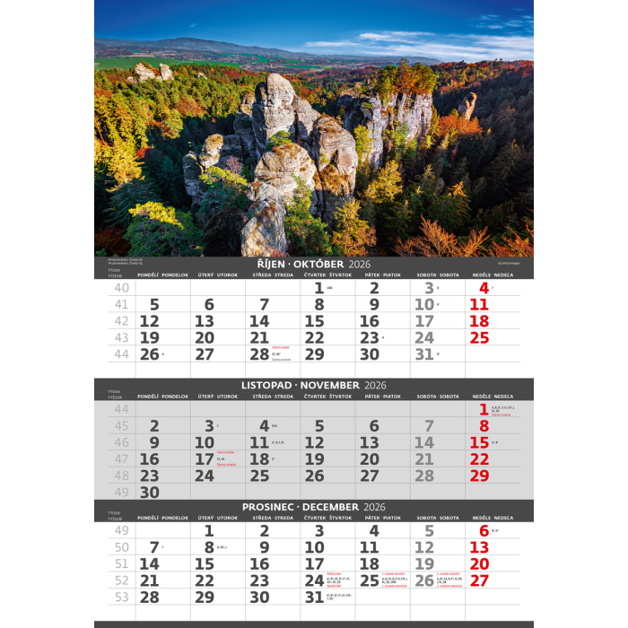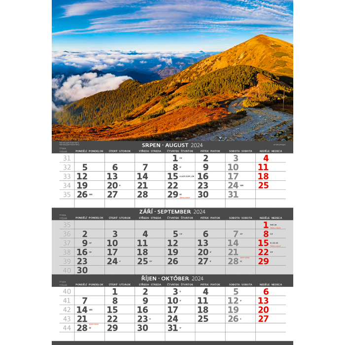 Nástenný kalendár 3-mesačný Hory 31,5 x 45 cm 2026