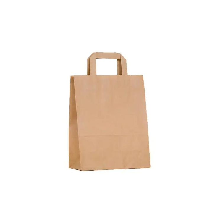 Tašky s plochým uchom sú vyrobené z kvalitného hnedého alebo bieleho kraftového papiera. Gramáž papiera: 70g/m2.