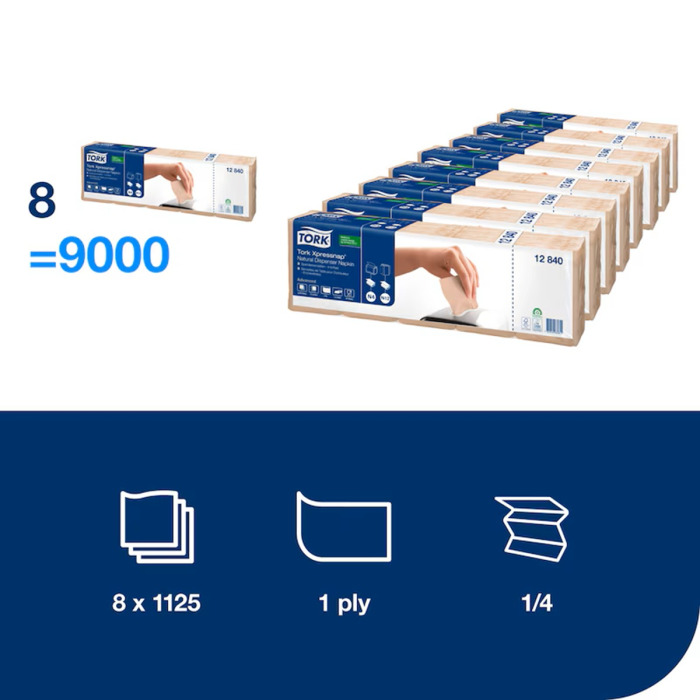 Tork Xpressnap® servítky do zásobníka sú výborné pre samoobslužné reštaurácie.Tento systém vám pomôže znížiť spotrebu servítok o 25 % v porovnaní s tradičnými zásobníkmi servítok, nakoľko hostia sa dotknú len tej servítky, ktorú použijú. Tork Xpressnap® natural 1-vrstvové servítky do zásobníka sú vyrobené zo 100 % recyklovaných vlákien.