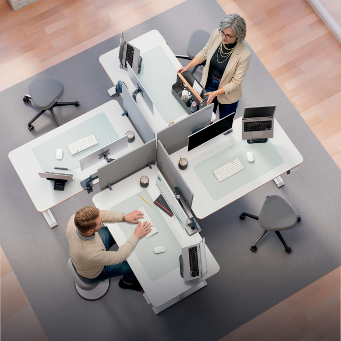 Medzery medzi doskou stola a deliacimi panelmi pre káble a