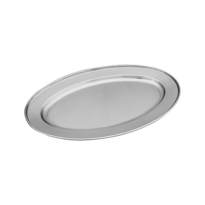Oválny nerezový podnos alebo servírovacia misa 35 x 22 cm.