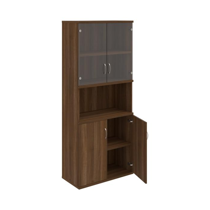 Kombinovaná skriňa - dvere/nika. Kancelárske skrine STRONG majú robustnú konštrukciu a vyššiu nosnosť políc ako bežné kancelárske skrine.V ponuke sú skriňové moduly s výškou 185 cm, 111 cm alebo 74 cm a šírky 80 cm alebo 40 cm. Hĺbka všetkých modelov skriňového radu STRONG je 40 cm.Chrbát, vyrobený z 8 mm hrubých dosák, je obojstranne pohľadový, takže skrine môžete použiť ako priestorový deliaci prvok. Hrúbka samotných políc je 25 mm, čo znamená nosnosť 80 kg na 1 policu.Korpusy, dvierka a police skríň sú olepené odolnou 2mm ABS hranou, ktorá garantuje dostatočnú ochranu proti poškodeniu.