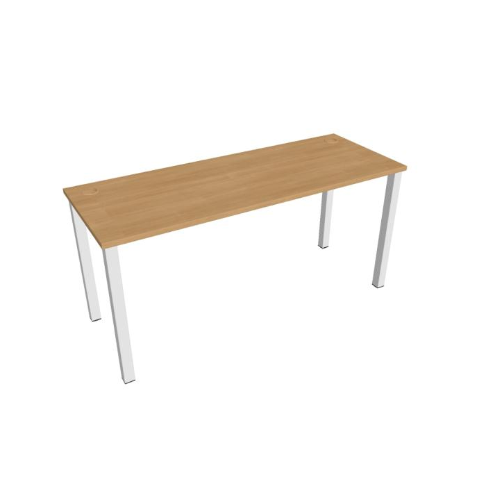 Pracovný stôl rovný. Doska stola z kvalitného lamina. Pevná kovová konštrukcia podnožia zo štvorcových profilov 50 x 50 mm je tvorená kompaktnými pármi nôh, ktoré sú spojené priečnikmi. Výškovo nastaviteľná rektifikácia zaisťuje možnosť dorovnania prípadnej nerovnosti podlahy až o 1,5 cm. Stolová pracovná doska z LTD má hrúbku 25 mm a je zakončená 2mm hranou ABS, ktorá ju chráni pred poškodením. Samozrejmosťou sú káblové priechodky a systém pre zavesenie káblov pod stolovou doskou. Možnosť objednania bieleho či sivého prevedenia podnožia. Stolové doplnky, kontajnery a skrine vyberajte z ponuky kancelárskeho nábytku Hobis. Aby sa zásielka dostala v poriadku až do Vašej kancelárie, dodávame stoly demontované v niekoľkých samostatných a bezpečne zabalených škatuliach. Súčasťou každého balenia je tiež prehľadný návod. Na stoly UNI sa vzťahuje záruka 5 rokov. Farebnosť je ilustratívna.