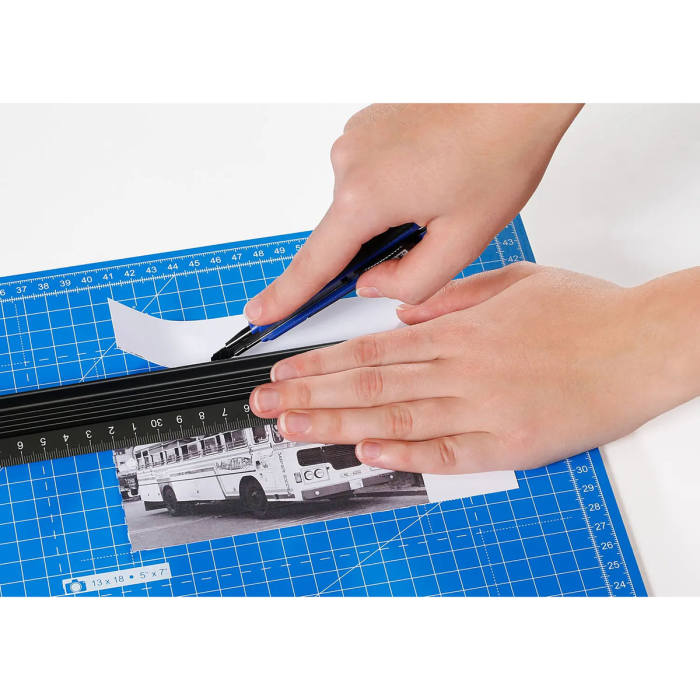 Obojstranná rezacia podložka s robustnou 5-vrstvovou konštrukciou s jadrom odolným proti prerezaniu, s predtlačenou mriežkou na jednej strane a protišmykovou stranou, poskytuje čisté a precízne rezanie a chráni pracovný povrch pred dorezaním.