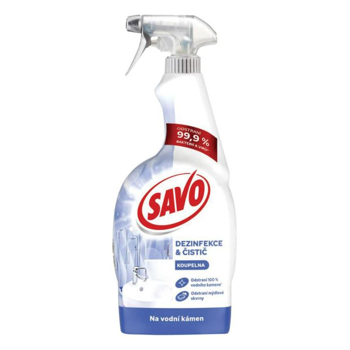 Viacúčelový sprej Savo dezinfekcia bez chlóru na vodný kameň je vynikajúcim pomocníkom pre priestor v kúpeľni či kuchyni. Tekutý čistiaci a dezinfekčný prípravok v spreji Savo zbaví čistené povrchy nielen nečistôt a vodného kameňa, ale hlavne alergénov a zlikviduje až 99,9 % baktérií. Navyše zanecháva príjemnú vôňu bez chemického zápachu. Má univerzálne bezoplachové použitie v celej domácnosti - je vhodný na odstránenie vodného kameňa a každodenného znečistenia v kúpeľni, na čistenie a dezinfekciu všetkých umývateľných povrchov v kúpeľni a tiež je ideálny pre domácnosti s domácimi maznáčikmi. Objem 700 ml.
