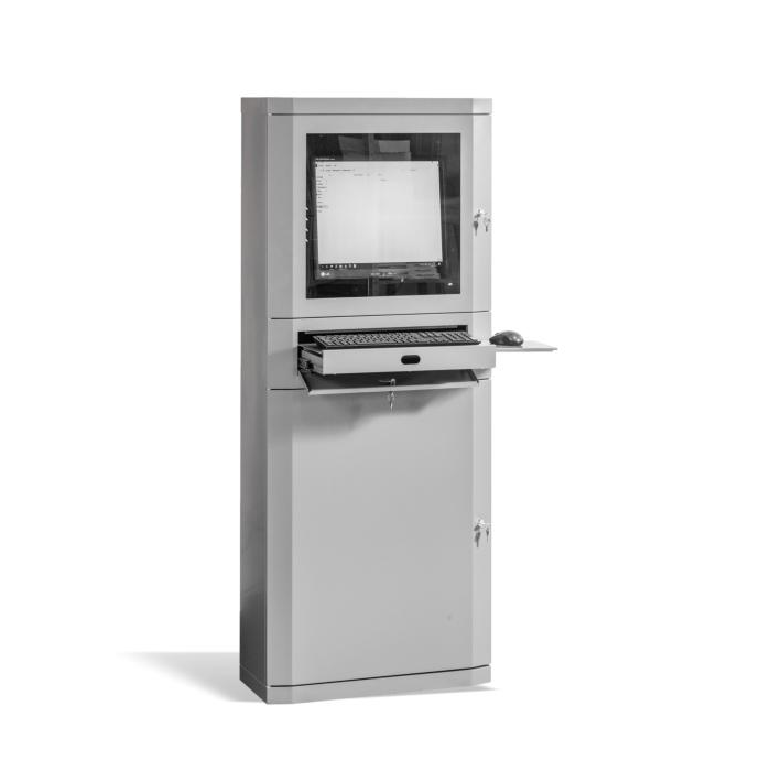 Skriňa na počítač, uzamykateľná, v.163 x š.65 x h.30 cm, sivá RAL7035
