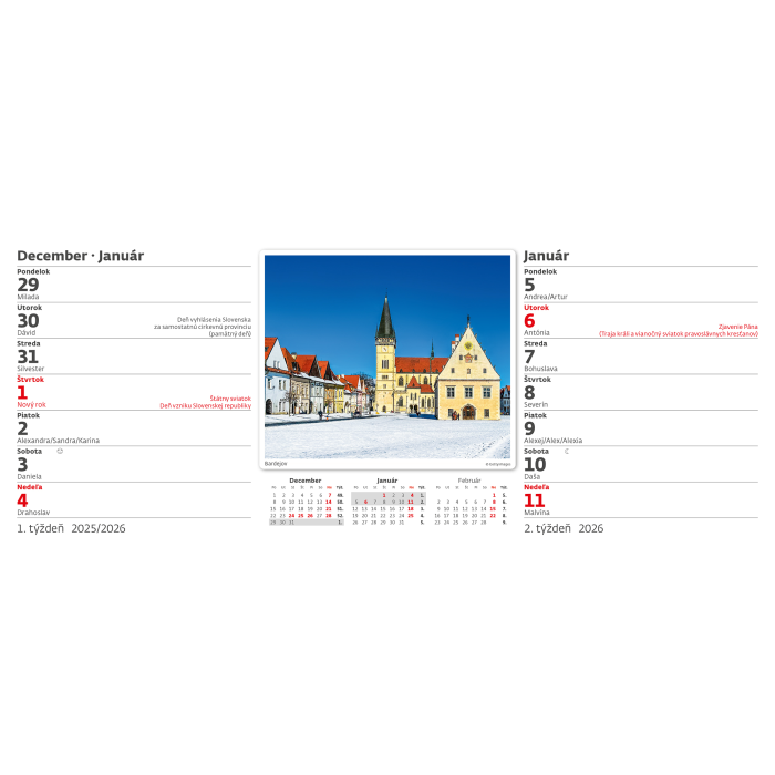 Stolový kalendár riadkový 32,1x13,4 cm - Mestá Slovenska 2026