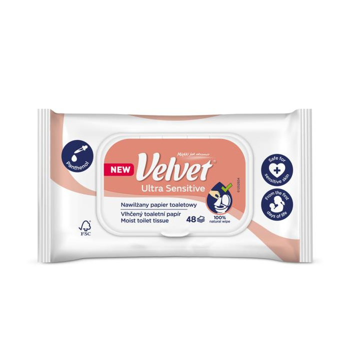 Vlhčený toaletný papier VELVET Ultra sensitive 48 ks