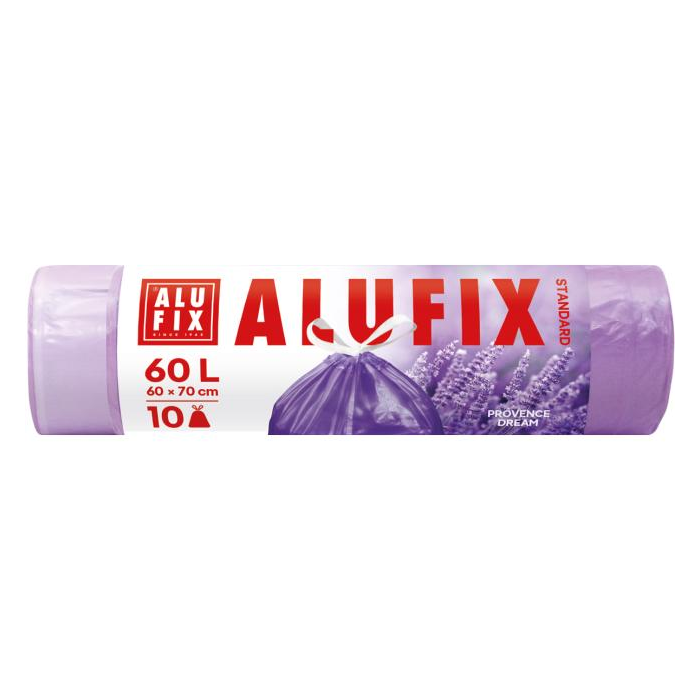 Vrecia na odpad zaťahovacie s vôňou levandule 60l/10 ks, 60 x 70 cm, fialové, HDPE