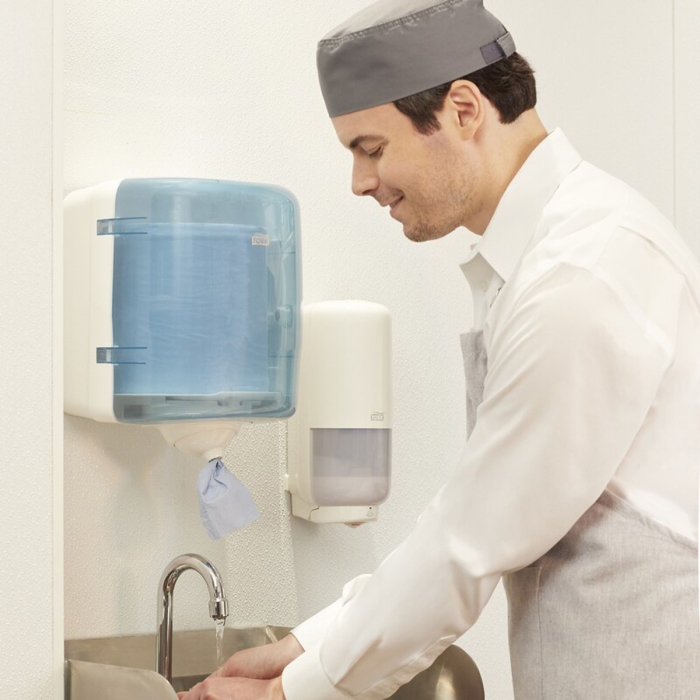 Tork® Reflex™ zásobník na jednotlivo dávkované utierky so stredovým odvíjaním je ideálny na utieranie rúk a povrchov pre profesionálne prostredie, navrhnutý tak, aby dokonale dopĺňal váš pracovný postup. Vďaka dávkovaniu po jednom útržku sa dotknete len toho, čo použijete, a vďaka otočnému dávkovaču budete mať prístup k papieru z akéhokoľvek uhla. Tento jednoducho použiteľný, hygienický a odolný systém znižuje spotrebu až o 37 % v porovnaní s Tork® systémom so stredovým odvíjaním.