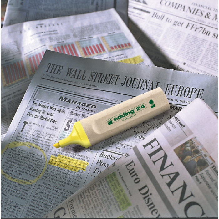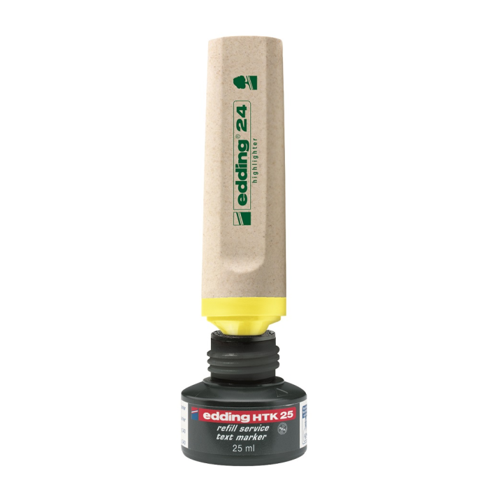 Minimálne 90% tela a uzáveru zvýrazňovača vyrobené z obnoviteľných zdrojov. Zvýrazňovač so zrezaným hrotom so šírkou stopy 2 - 5 mm. Pre zvýraznenie textových pasáží, poznámok a pod. Atrament na vodnej báze s intenzívnymi farbami. Dopĺňateľný atramentom HTK 25. Balenie 10 ks.